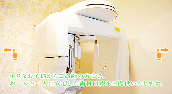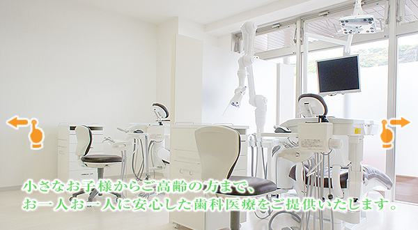当院では、患者様のご要望を最大限に尊重し、安全で質の高い治療を提供していくことを目標としております。地域に根ざしたホームドクターとして、みなさまが生涯健康な歯で笑顔の絶えない生活がおくれますようお役に立ちたいと思っております。